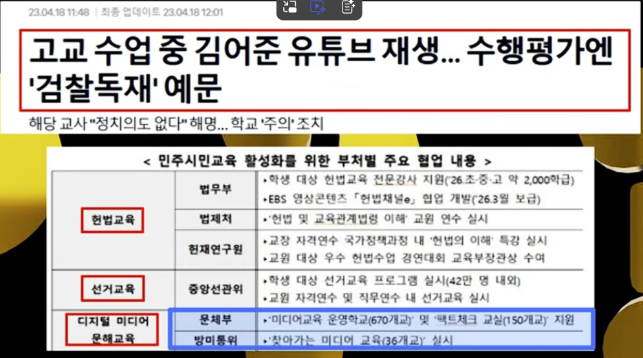 교육부는 김어준 방송을 틀어준것에 대해, 수업 집중도 제고와 교권보호라는
