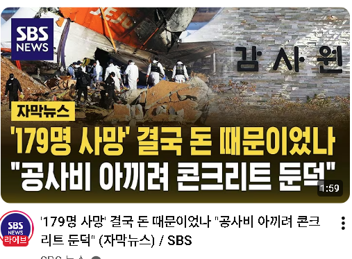 스샷2. 무안공항 제주항공 여객기 참사. 콘크리트 둔덕